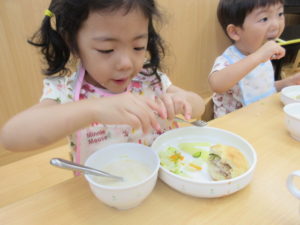 スティック状のポテトも人気でよく食べ、おかわりをする子もいました。