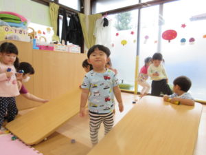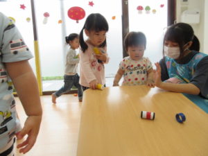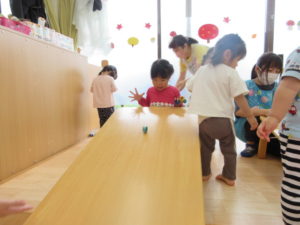 坂道で、コロコロ~とおもちゃを転がして遊びました😊