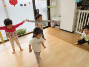 ジャンプをしたり、寝っ転がったり…たくさん体を動かしました‼