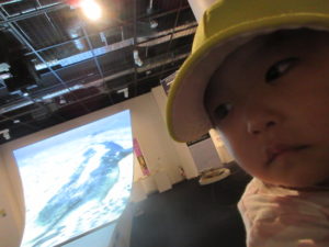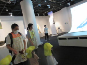 図書館の中では クジラの本物の骨や昭島の昔の姿の映像がスクリーンで紹介されていて、少し暗い室内にドキドキしながらも皆釘付けでした☺