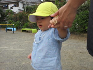 朝おやつを食べてお散歩です。