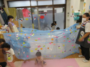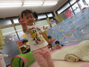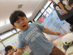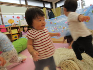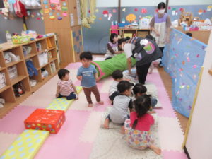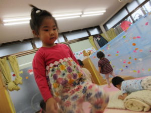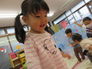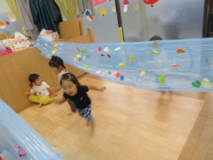カーテンの中ではジャンプをしたり、お友達と