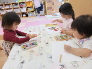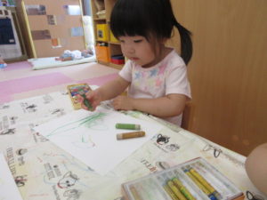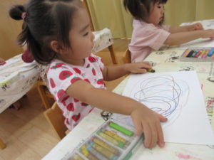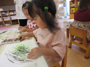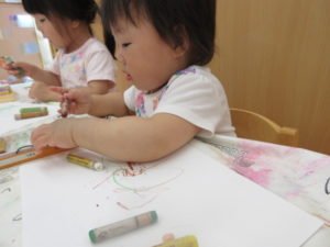 皆それぞれクレヨンの持ち方や描き方に成長が見られました🖍