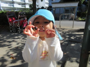 公園に着くとお掃除をしてくださっている地域の方に立派なドングリをいただきました🌰
