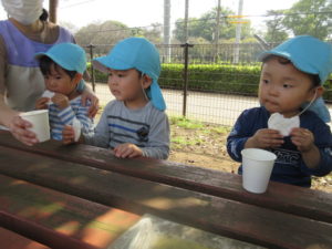 おやつを食べ、大きな山でも遊びます☺