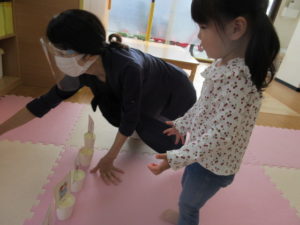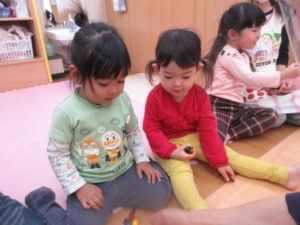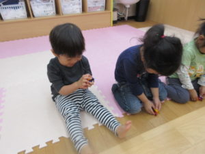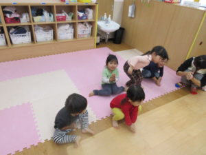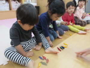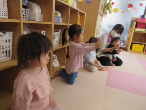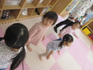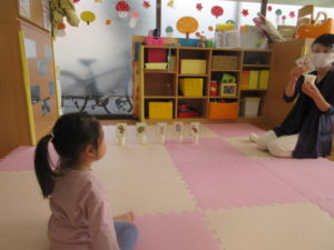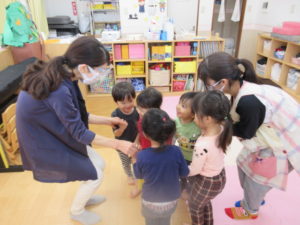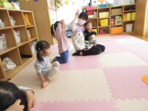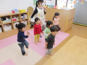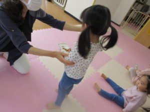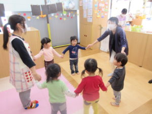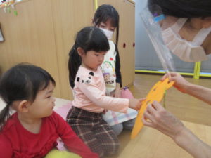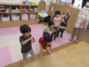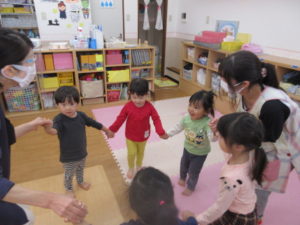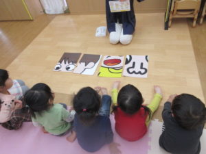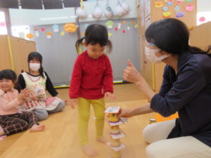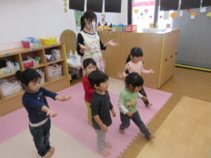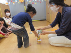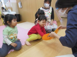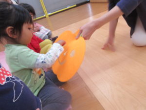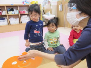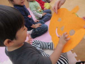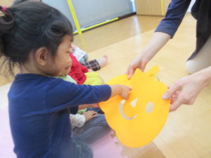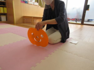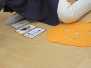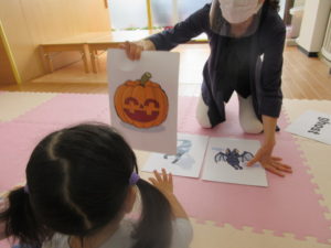 歌をうたったり踊ったり、みんなで手を繋いで、輪を小さくしたり、大きくしたり、ハロウィンのカードを使ってゲームをしたりしました🎃