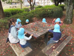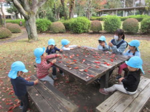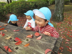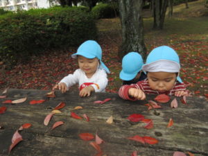 木の実を見つけて拾ったり、おちばを集めたり、ばらまいたり…この時期ならではの遊びも楽しんできました🍂 (早)