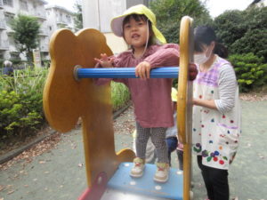 最初は 保育者に手を借りての乗り降りでしたが今日は 随分と自分で慎重に乗り降りすることが出来ていましたよ✨