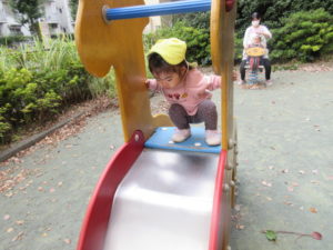 丁度いいサイズのすべり台。子どもたちも無理なく登って滑ることが出来ます🐘
