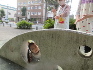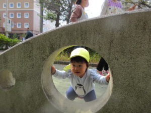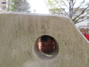 穴の開いた遊具は のぞき穴から可愛いお顔をのぞき込んで楽しみます✨
