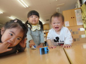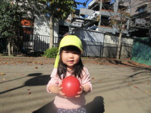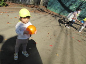 大事にボールを持つ子、ポーンと投げること様々です☺
