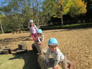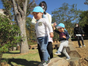 ちょっと大きい丸太もドキドキしながら渡れたね☺