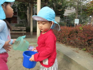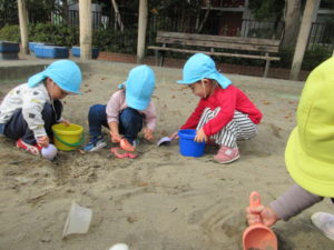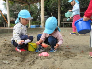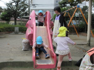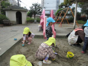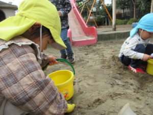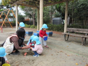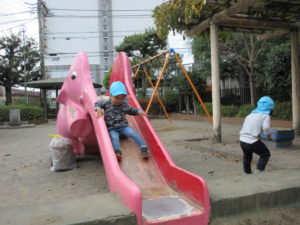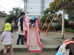 公園ではお砂場遊びやすべり台を楽しみました♪