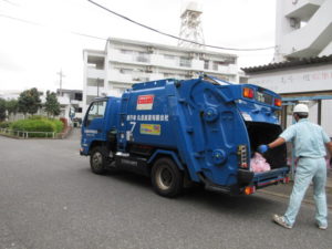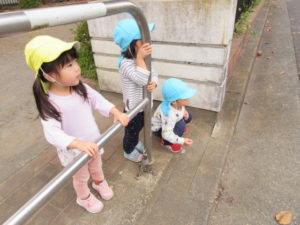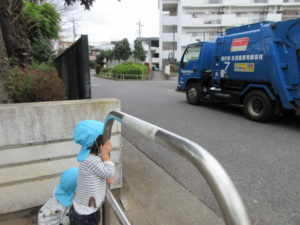 途中でごみ収集車に会うこともでき、みんな興味深々で清掃員さんや収集車をじっと見ていました。