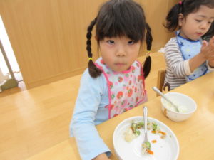 さわらのみそ煮もキャベツのゆかり和えもよく食べ、完食する子が多かったです。