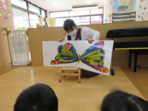 今回は大きな「はらぺこあおむし」の絵本を見ました📕