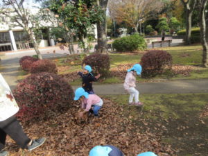 落ち葉を集めて、パラパラ~と
