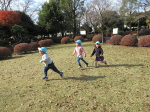 思いきり走ったり、かくれんぼで遊ぶ子どもたち。