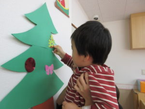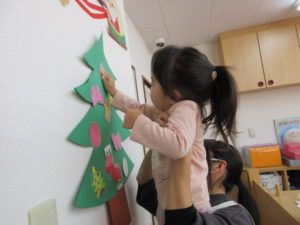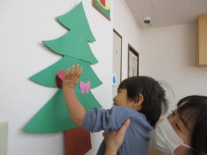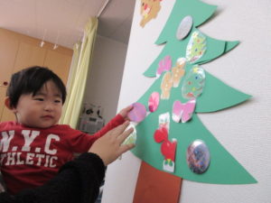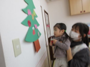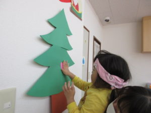 今日は 朝から保育園のもみの木の飾りつけをしました🎄