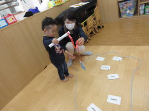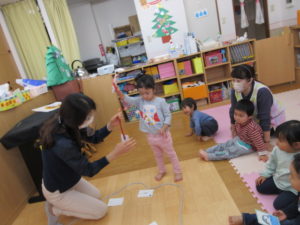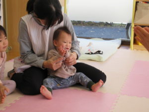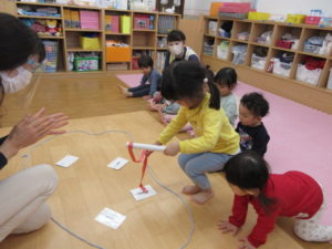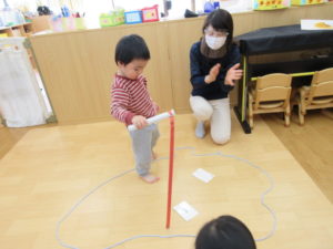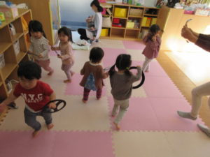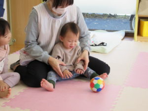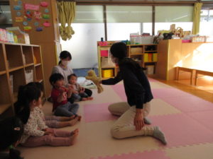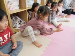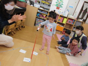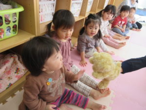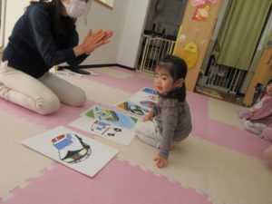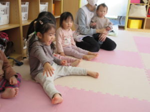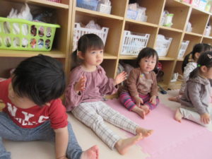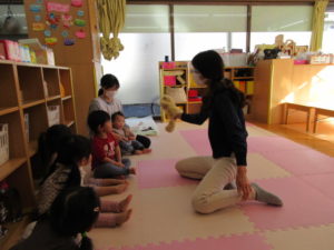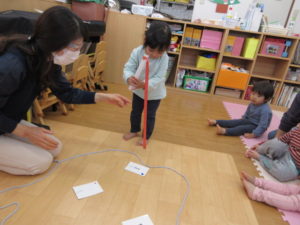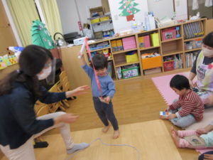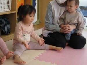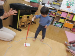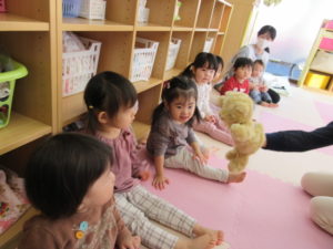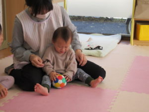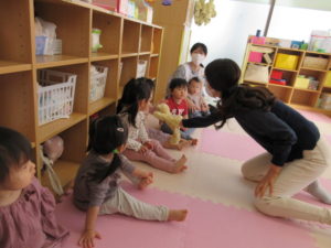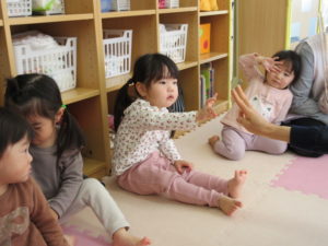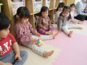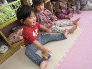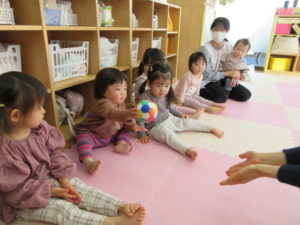 I’m here!  の後のキャッチボールは もうみんなお手の物。全員上手に出来ました。