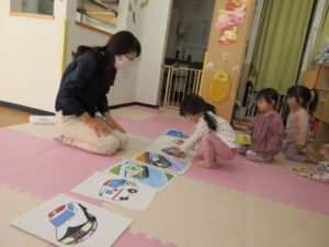 英語を楽しみに待つひまわり組のお友だちです😊