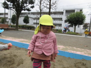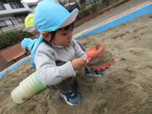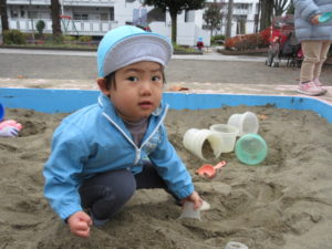 今度は お水を持って行って固い砂を作ろうねとお約束しました。