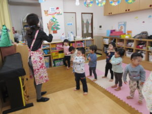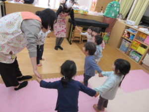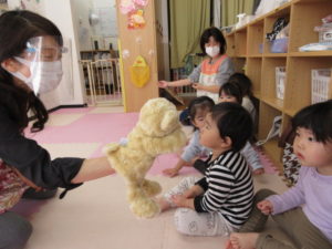 今日は 保育参加や園見学に地域の方が来てくださり、最初は ちょっぴり緊張気味だったひまわり組のお友だちですが