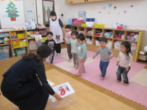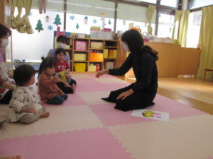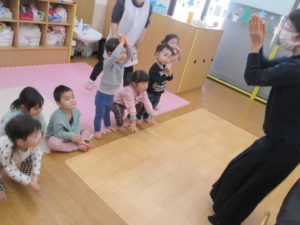 ひまわり組は「hello~」と挨拶をしてから