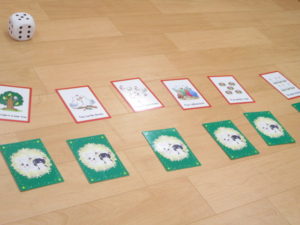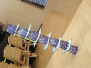1~6の数字を数えたり、紙コップとカードで