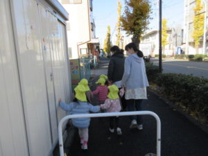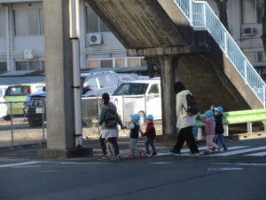 その時 そら組のお友だちが信号を待っていて、