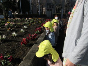 その後あいぽっくの小さい広場でベンチに書いてある椅子の絵をみんなで見たり、