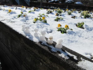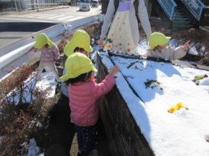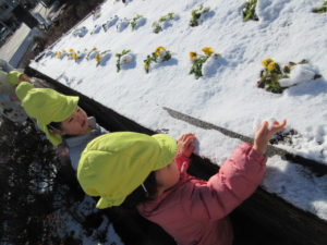 フワフワの雪がまだ残っていたので感触を楽しんだり、丸めたりしました⛄