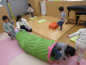 終わってからはトンネルや台を使って身体を動かしたり、