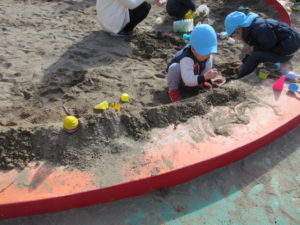 子どもたちは 砂場でたっぷり遊びました。