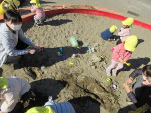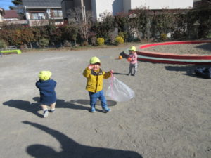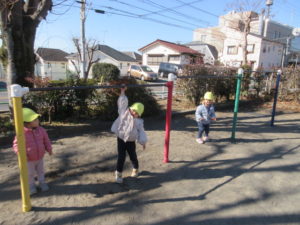 今年最後の凧揚げに 幼児公園まで行ってきたひまわり組の皆です。