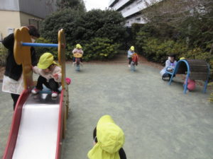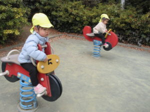 すべり台も乗り物もひまわり組のお友だちにぴったりのサイズ。