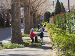 そら組はおやつを食べて並木道へ。