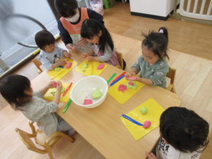 そんな中、ひまわり組は 小麦粉粘土を楽しみます(^^♪