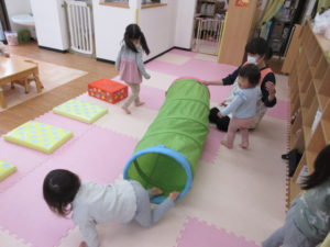 両足ジャンプが上手に出来るようになったお友だちを見て、皆真似っこしています。