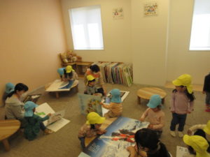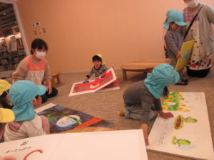 たくさんの絵本を見て、読んで、とても楽しそうでした。