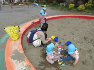 お砂場でとっても楽しそうに遊んでいました。