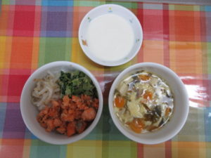 お給食はさけのビビンバと
