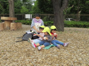 エコパークに到着してすぐにみんなでおやつを食べて、大きな遊具や丘でたくさん遊びました♪