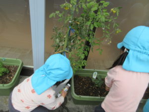 トマトも実り始め、子どもたちは大喜び。また今日も新しいトマトの赤ちゃんを見つけて嬉しそうに教えてくれました♪