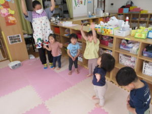 「1.2.3.4.5.6.7♪」「1.2.3♪」と数字の歌を歌いながらリズムに合わせて体を動かしたり、歩いたり⭐