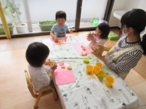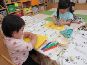 また、ひまわり組さんもお散歩に出かけた後粘土遊びを楽しみました♪