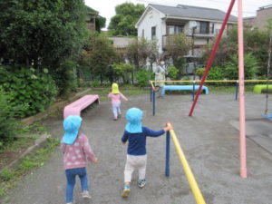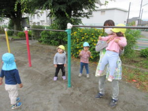 鉄棒に挑戦したり、先生と追いかけっこも楽しみました♪