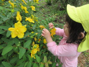 公園には綺麗な色をしたお花がたくさん咲いており、「きいろ~!」「むらさき~!」と言って興味津々な子どもたちでした🌼
