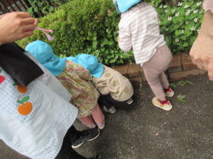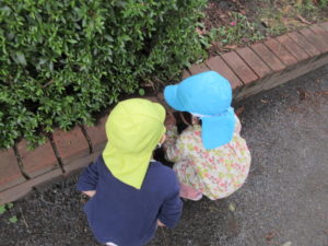 「こっちにもいるよ」と友達に教え合う子どもたち。