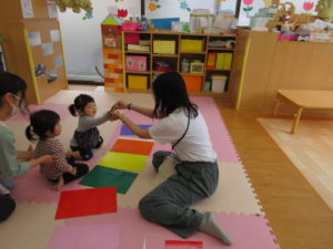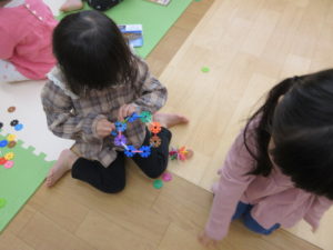 朝おやつの前にはジスターと言うお花の形のような、繋げて遊ぶ玩具でみんなで楽しく遊びました♪